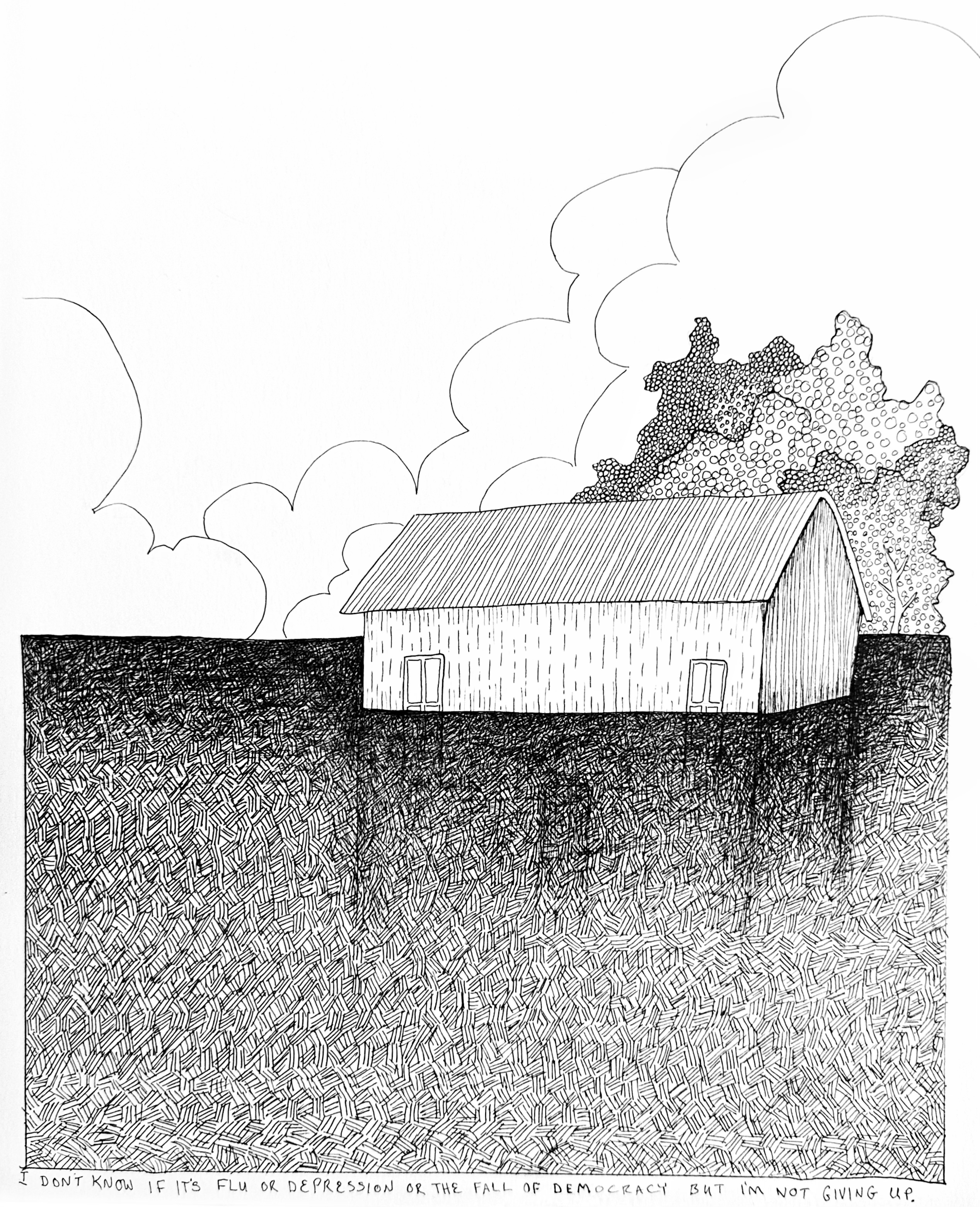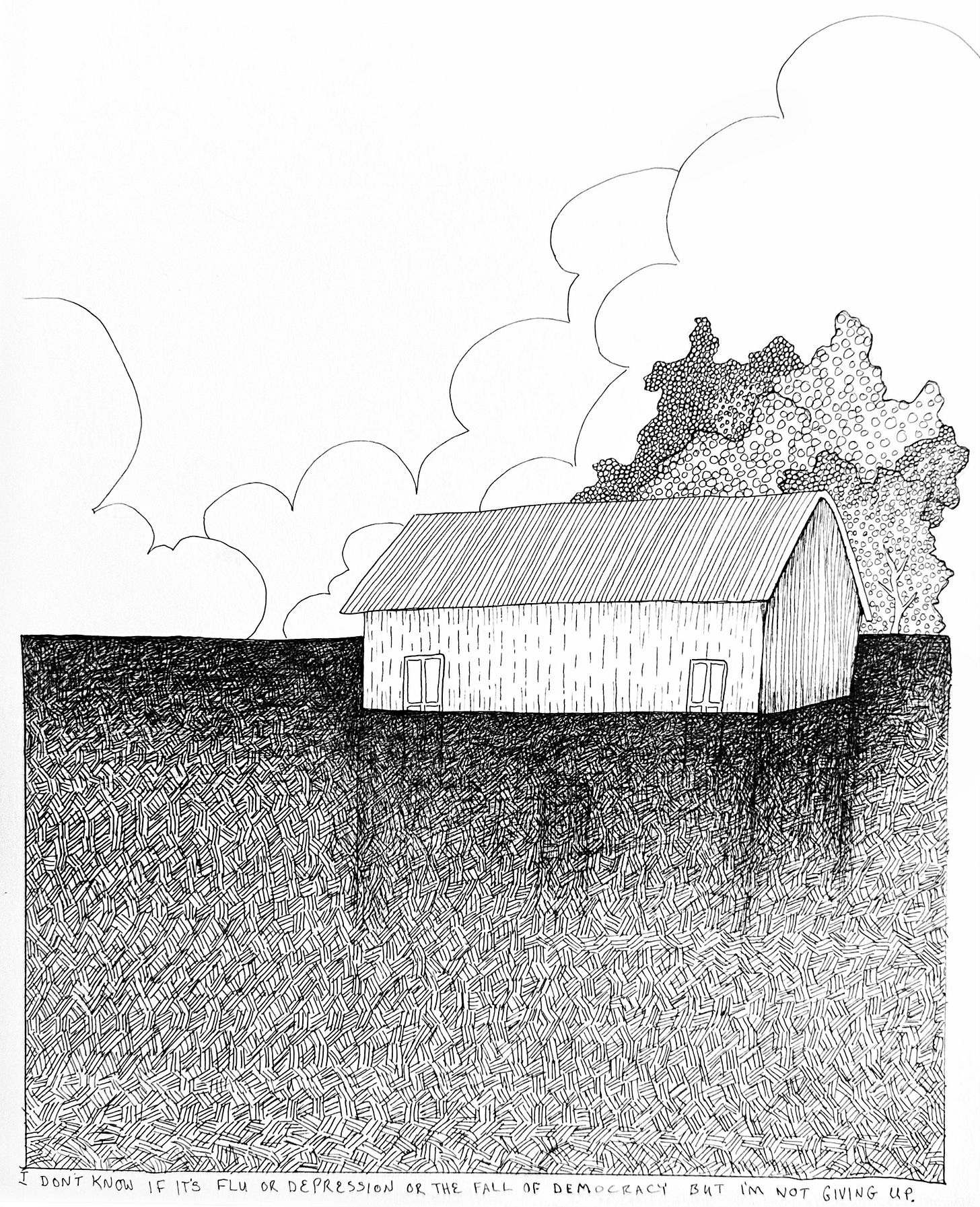 This last week I felt not great and I thought maybe I had the flu but it never moved past this incredible exhaustion where gravity worked overtime and then I thought, ‘Oh…right…it’s depression’. And then I was like, “Or maybe it’s because democracy seems to be dissolving faster than normal and this is what it’s like to live with this high-level of anxiety for so long?” Regardless, this week’s drawing is a representation of how I’ve been feeling, but with a reminder that I needed and maybe you do to: This will not last forever.